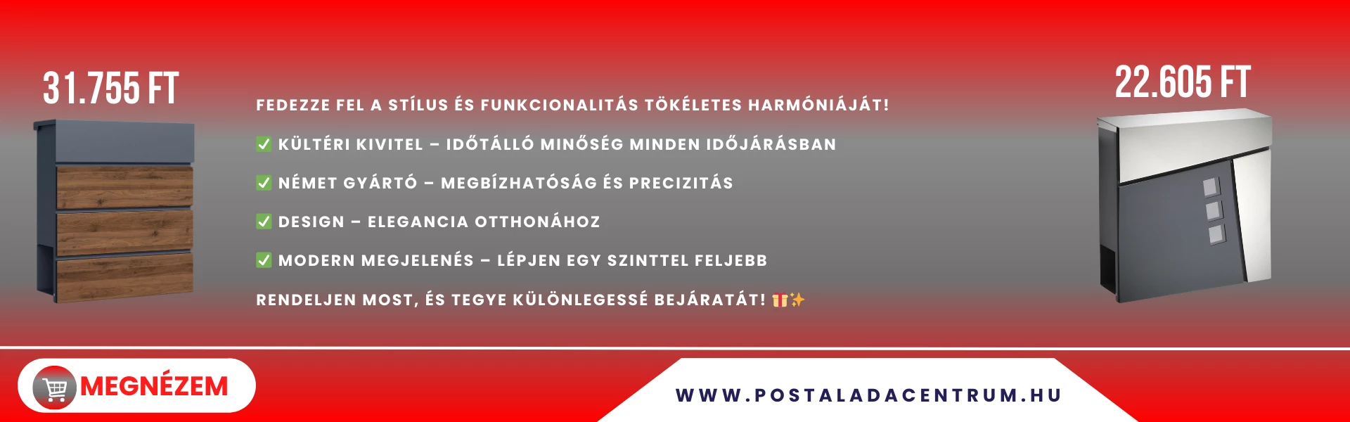 Ezüstszínű postaláda, 215x320x90 mm - számzárral, névtáblával és betekintő ablakkal